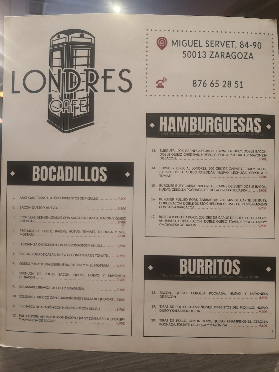 Welcome to Londres Café, a delightful culinary gem nestled in the heart of Zaragoza on Miguel Servet, 86. This café captures the essence of British charm and warmth, offering patrons a taste of England with an inviting twist. Whether you're starting your day with their freshly baked croissants and a perfect café con leche, or enjoying hearty plated dishes, each meal is crafted with care and quality.